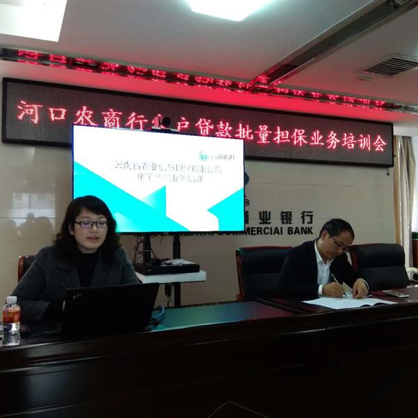 1月16日下午,紅河辦事處工作人員受邀參加云南河口農(nóng)村商業(yè)銀行股份有限公司擔(dān)保業(yè)務(wù)培訓(xùn)會(huì)。